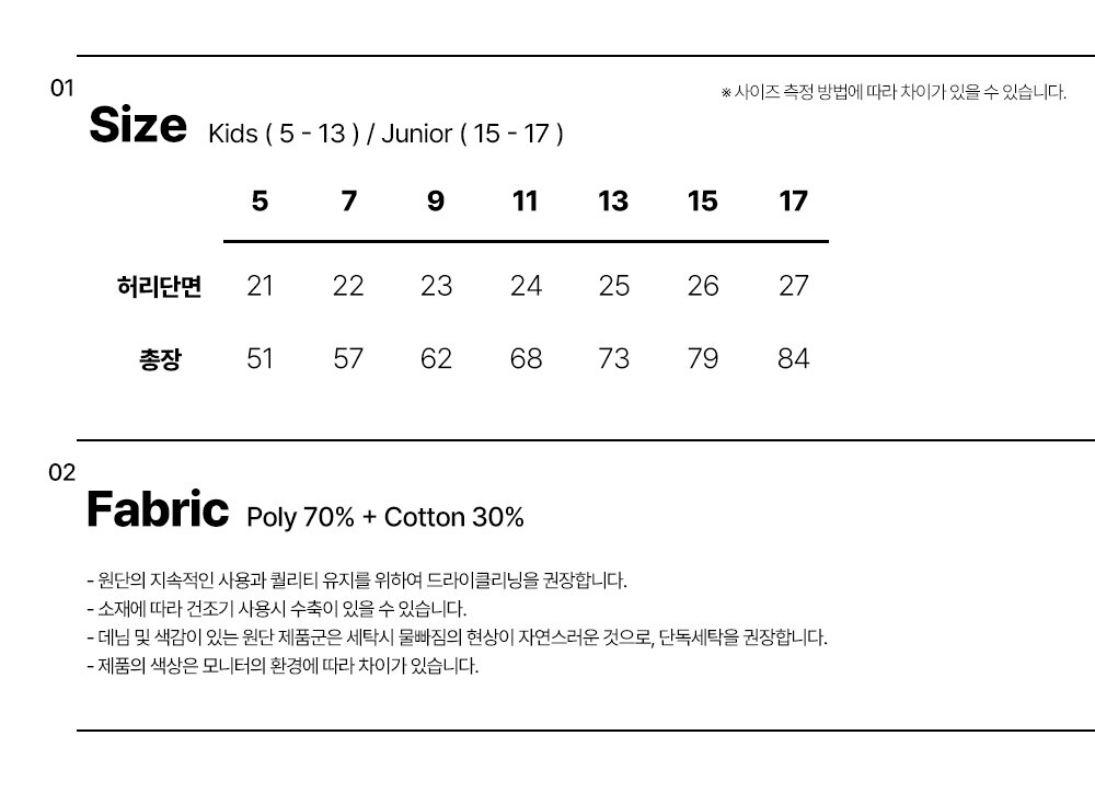・ 상품 컬러 및 사이즈는 제작 시기별, 생산시즌별로 원단 컬러와 사이즈 차이가 발생할 수 있습니다.