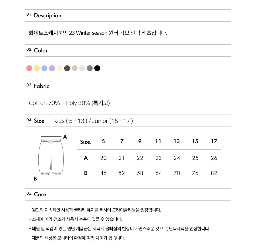・ 상품 컬러 및 사이즈는 제작 시기별, 생산시즌별로 원단 컬러와 사이즈 차이가 발생할 수 있습니다.